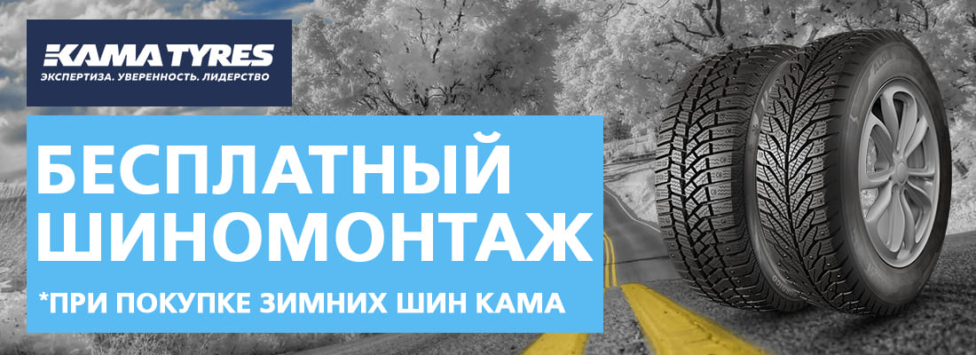 «Центр Шин» совместно с «KAMA TYRES» дарят своим покупателям БЕСПЛАТНЫЙ ШИНОМОНТАЖ! *при покупке комплекта зимних шин KAMA или VIATTI